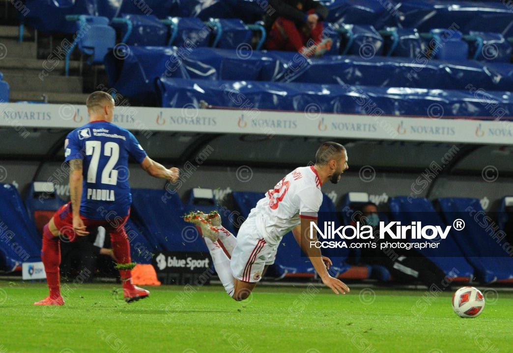 В 34-та минута спестен жълт картон за Падула за фаул срещу Йомов.