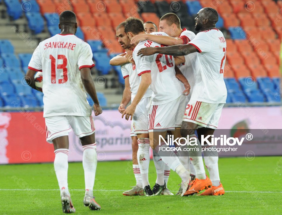 В 25-та минута Йомов краде топката на Пулулу и се оказва сам срещу вратаря, удар в ръцете на Николич.