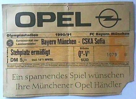 ЦСКА загуби от Байерн (Мюнхен) с резултат 4:0 във футболна среща от Осминафинал — първа среща на Купа на европейските шампиони 1990/91 играна на 23 октомври 1990 г. в 21:00 ч. на стадион „Олимпиящадион“ в/във Мюнхен.