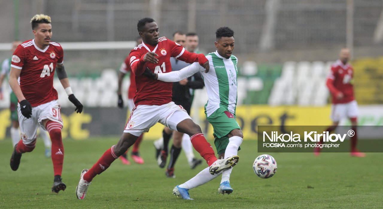 В 22-та минута Кайседо е изведен, минава надясно и пробва да подаде на Чарлз - блокиран. В същата минута жълт картон за Ангелов за грубо нарушение срещу Турицов.