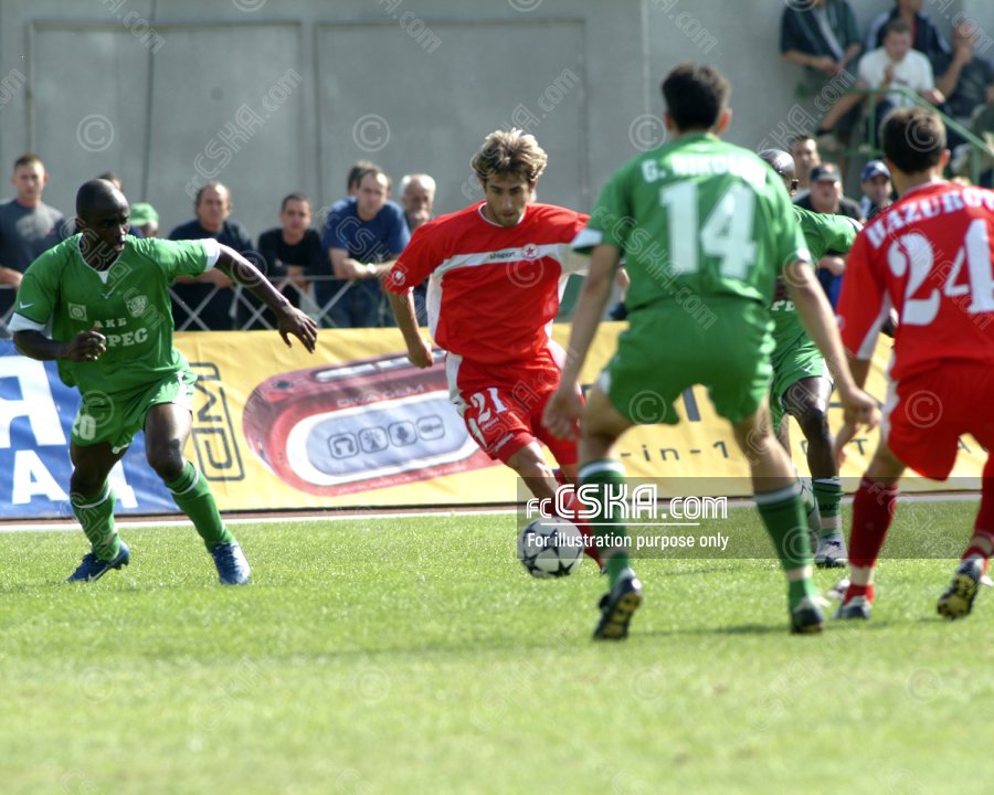 21-а мин. - опасност пред вратата на червените: Масена Моке финтира Върбанов по дясното крило, обръща се и центрира към Метушев. Последният се засуети и топката и избита