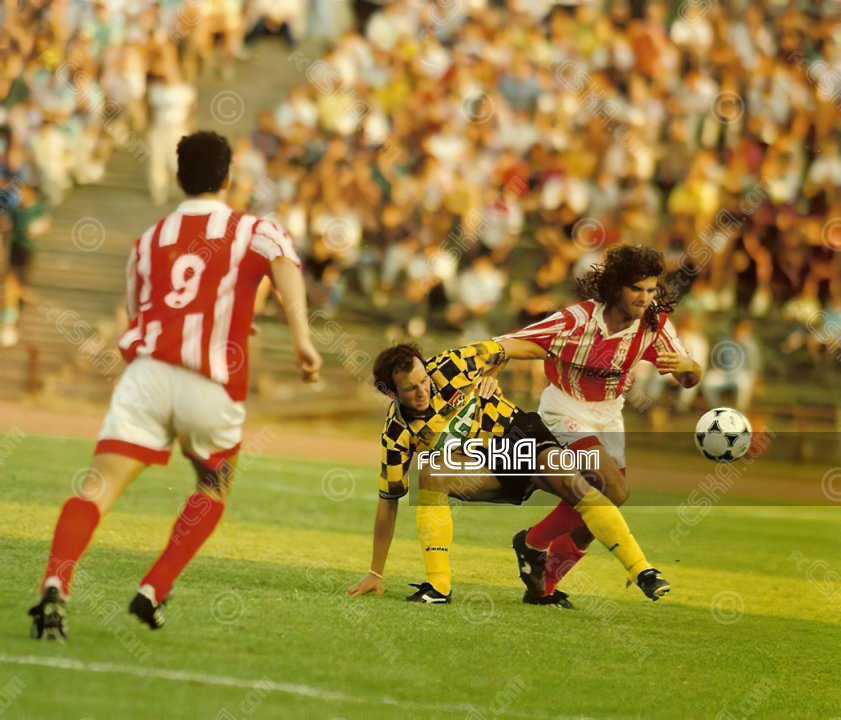 Гостите явно се надяваха на неволни грешки в защитата на домакините. Подобна ситуация възникна едва в 27-ата минута, когато при едно центриране на Иларионов топката намери свободния Андонов, но волето на централния нападател бе неточно. Прекалено откъснати останаха остриетата Андонов и Чирич. Играчите от средната линия Радуканов, Коилов, Нанков и Иларионов играха погрешно и съвсем неоправдано изтеглени на по-задни позиции. Не бе ползвана скоростта на типичното крило Нанков, нито пък техниката на „слаломиста“ Коилов. Това, което не сториха нападателите, направи защитникът Мачев. В 35-ата минута той нахлу необезпокояван с топката в полето на домакините и пред погледа на самонадеяните играчи в жълто-черно провря топката покрай вратаря Попов. Впрочем, най-големи главоболия на пловдивската защита до напускането му създаде именно бранителят Мачев. Сполуката на защитника подсети Нанков да заиграе активно по десния фланг. Коилов и Иларионов окупираха лявата страна и по този начин накараха домакините да помислят за своята защита. След един пробив по левия фланг Коилов опасно изстреля топката по диагонал, но вратарят Попов показа своето майсторство.