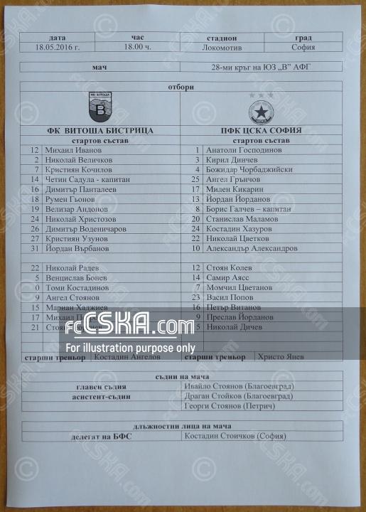 ЦСКА записа 30-а победа в Югозападната „В“ група, побеждавайки втория в класирането Витоша (Бистрица) с 2:0. Двубоят бе отложен мач от 28-ия кръг и последна проверка за „армейците“ преди финала за Купата на България срещу Монтана на 24 май (20:00 часа).