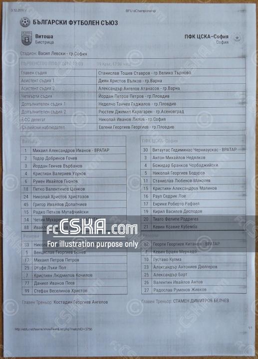 ЦСКА победи Витоша (Бистрица) с 2:0 и оглави класирането в Първа лига с 44 точки в актива си. Двубоят от XIX кръг на първенството се игра на Националния стадион „Васил Левски“.