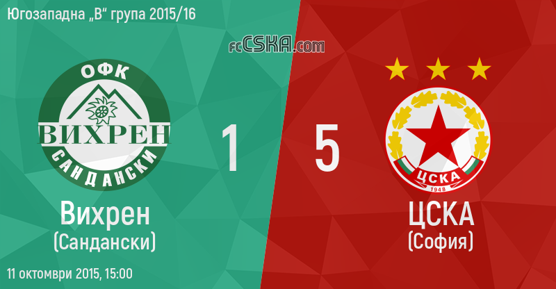 Отборът на ЦСКА се наложи с категоричното 5:1 над Вихрен в мач от 10-ия кръг на Югозападната „В“ група.