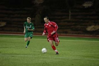 40-а мин. - сериозна заплаха за червените. 6.Пол Матис центрира отляво към 10.Миле Кръстев, последният отправя опасен удар с глава към нашата врата, но топката е избита в корнер