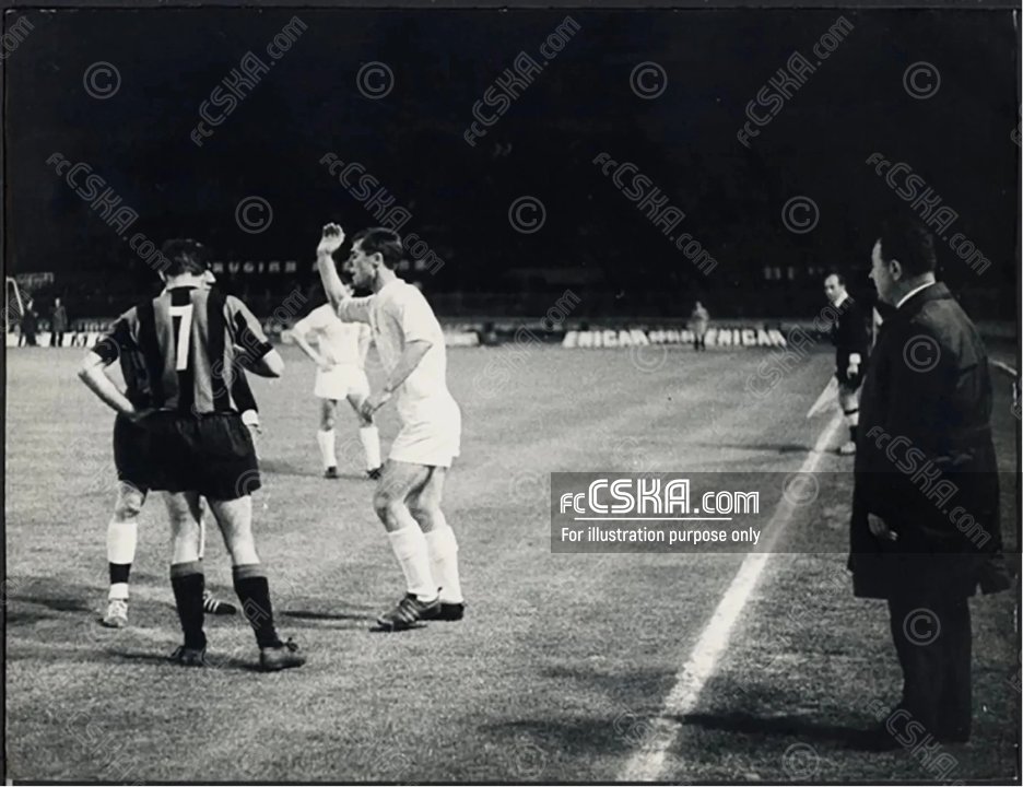 През първото полувреме „Интер“ игра много силно. Овладели средата на терена, „синьо-черните“ търсеха удобни коридори към българската врата. Особено се проявиха с находчивите си пасове и бързината си Мацола и Капелини. В същото време българският отбор отново изгради добър защитен вал пред своята врата и хладнокръвно отбиваше опасните атаки на италианците. Само онази фатална грешка в 12 минута... Една центрирана топка към Капелини на мястото на дузпата не успяха да отбият Василев и Пенев, които бяха в непосредствена близост до италианския състезател с №9. Закъснялата реакция на изненадания Йорданов стана причина за единствения гол в нашата врата. Отлично в защитата се представи Пенев, който „математически“ предугаждаше ходовете на противника и парира много опасности. Веднага след него най-добра оценка заслужава Маринчев, както и Станков. За съжаление, този път нападателите ни не съумяха нито да застрашат вратата на Сарти, нито пък да задържат топката в полето на „Интер“. Главната вина за това имат много изнервените Цанев и Якимов. Ако тези състезатели бяха енергични както своите колеги от отбраната, може би щяхме да съумеем да върнем вкарания ни гол. Но не би! Към края на мача в щурм се втурнаха Гаганелов и Маринчев. Бяха отправени няколко далечни удара към вратата на Сарти, но това бе малко и недостатъчно, за да се изравни резултатът.