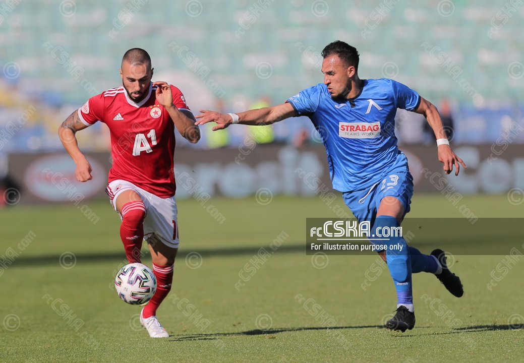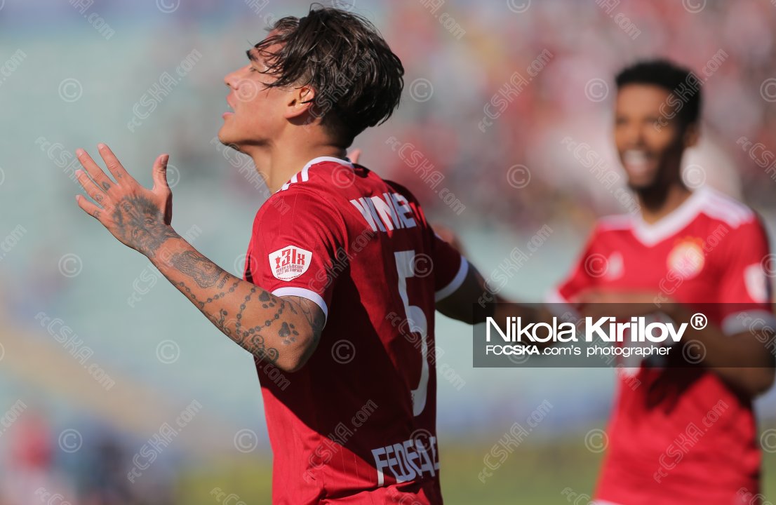 В 36-та минута невероятен пропуск за червените - Варела със страхотен пас извежда Йомов, той пробва да прехвърли Микулич, който успява да избие с ръце, пак Йомов сам срещу вратата с глава изкарва в аут.