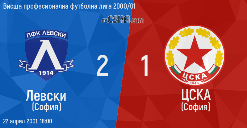 | Турнир: | Висша професионална футболна лига 2000/01 (21-ви кръг) |