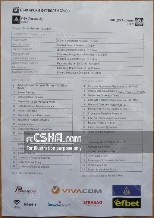 ЦСКА победи Левски (София) с резултат 2:3 във футболна среща от 35-и кръг на Първа професионална лига 2017/18 - първа шестица играна на 15 май 2018 г. в 18:30 ч. на стадион „Васил Левски“ в/във София. Голмайстори за Армейците са Енрике (20′), Кристиян Малинов (57′) и Рубен Пинто (90′).