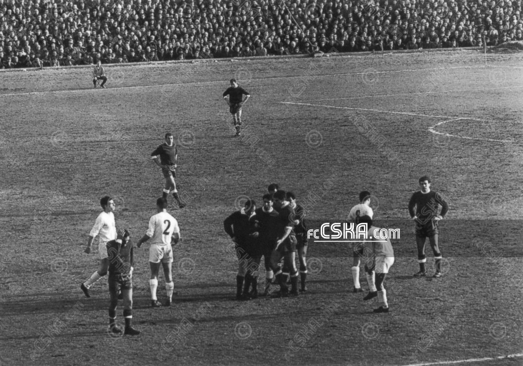 Хиляди зрители, минали през „деветте кръга на ада“, докато се снабдят с билет и намерят място на стадиона, сигурно си спомняха приказката за прехвалените ягоди и за празната кошница, когато напуснаха трибуните. За играта на „Левски“ и ЦСКА „Ч. знаме“ няма да говорим. Защото игра нямаше, въпреки доброто представяне на отделни единици от двата отбора. Настроените, бихме казали настървени до краен предел едни срещу други, състезатели не бяха в състояние да ни демонстрират онова, което наричаме футбол, въпреки несъмнените добри спортнотехнически качества на редица състезатели от двата състава. Така е, когато не се играе преди всичко за самата игра, а всеки търси победата и двете точки „на всяка цена“, без да се подбират от някои средствата. Състезатели като Георгиев, Василев, Соколов, Маринчев, Златков, Атанасов и др. търсеха неведнъж да умерят не толкова топката, колкото краката на противника, стараеха се всячески да не позволят на съперниците си да сторят онова, за което бяха излезли на терена, т.е. да играят футбол. Якимов например само веднъж успя да се добере до наказателното поле на „Левски“, защото навсякъде по пътя му се изпречваше един крайно брутален и безочлив грубиян като Георгиев, от когато по-нататък (ако Якимов все пак успяваше да го премине) „щафетата“ в „опазването“ му поемаше Златков. И Аспарухов след мача показваше синини по тялото и краката си. По повод на некоректната си постъпка в края на мача той ни каза: „Омръзна ми вече на всеки мач да ме ритат, бутат, щипят и провокират. И аз съм човек с нерви. Идва ми вече да се откажа от този футбол!...“ Влизаме наистина в положението на този наш талантлив футболист, но това съвсем не може да оправдае осъдителната му постъпка в края на мача. И той трябва да си получи заслуженото. Заедно с това ние отново използуваме случая да апелираме към дружествата и Българската федерация по футбол да взимат най-крути мерки срещу грубияните, които не само че не позволяват на най-техничните и изтъкнати наши състезатели да играят футбол и да проявяват своето майсторство, но и поставят в опасност тяхното здраве.