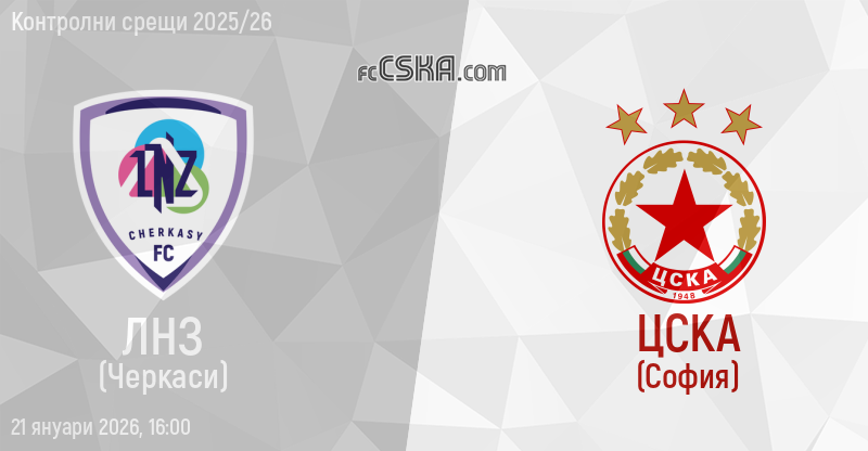 ЦСКА ще играе с/със ЛНЗ (Черкаси) във футболна среща от Контролни срещи 2025/26 на 21 януари 2026 г. в 16:00 ч. на стадион „Титаник Мардан Спорт Сентър“ в/във Лара. Мачът ще бъде предаван на живо по „Sportbg.bg”.
