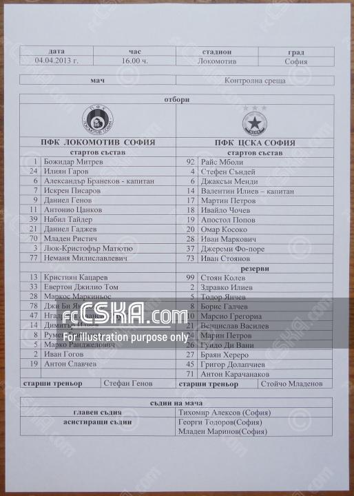 ЦСКА победи Локомотив (София) с резултат 1:3 във футболна среща от Контролни срещи 2013/14 играна на 4 април 2014 г. в 16:00 ч. на стадион „Локомотив“ в/във София. Голмайстори за Армейците са Ивайло Чочев (7′), Валентин Илиев (14′) и Мартин Петров (41′).