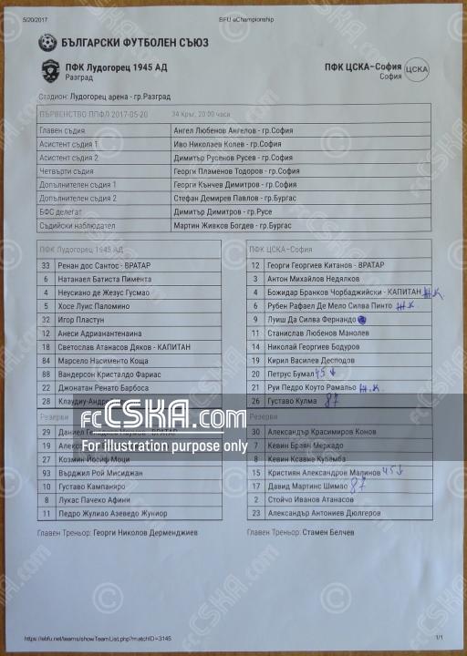 | Турнир: | Първа професионална лига 2016/17 - първа шестица (34-ти кръг) |