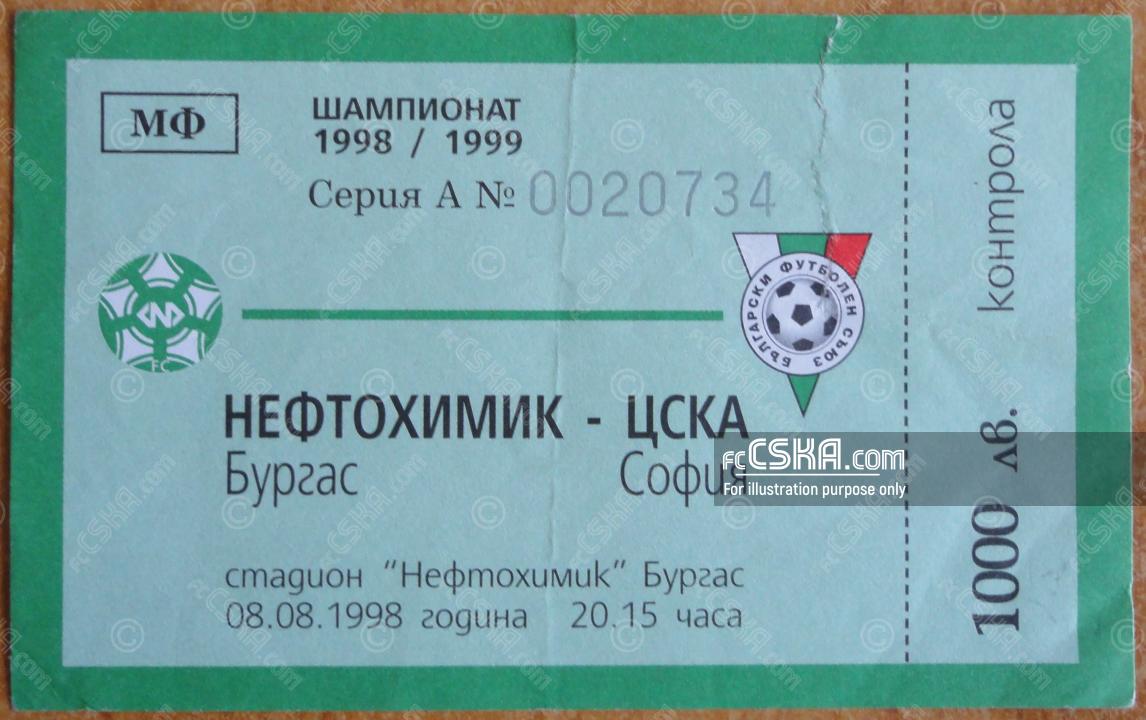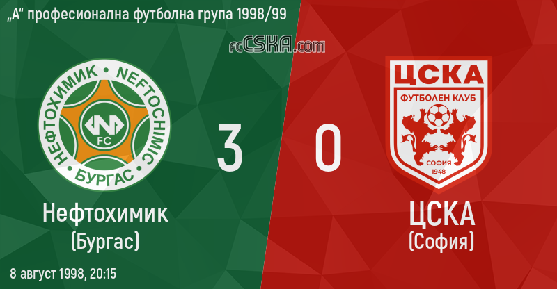 ЦСКА загуби от Нефтохимик (Бургас) с резултат 3:0 във футболна среща от 1-ви кръг на „А“ професионална футболна група 1998/99 играна на 8 август 1998 г. в 20:15 ч. на стадион „Нефтохимик“ в/във Бургас.