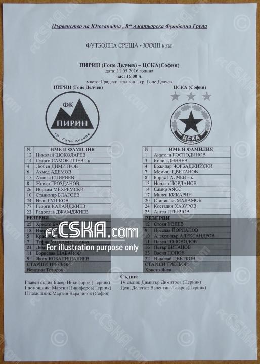 | Турнир: | Югозападна „В“ група 2015/16 (33-ти кръг) |