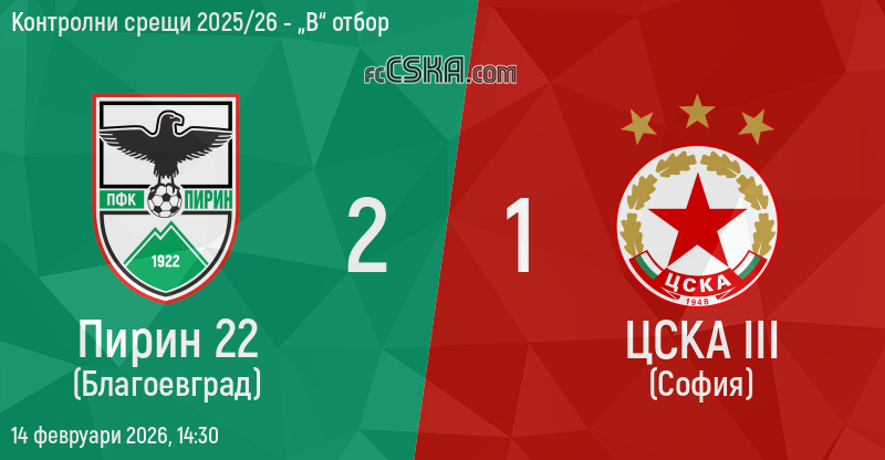 | Турнир: | Контролни срещи 2025/26 - „В“ отбор |