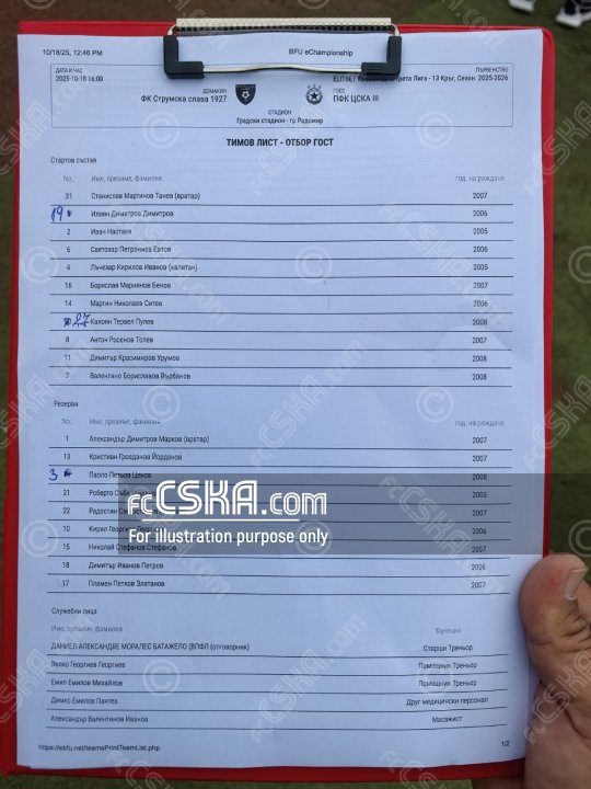 | Треньор на ЦСКА III: | Даниел Моралеш |