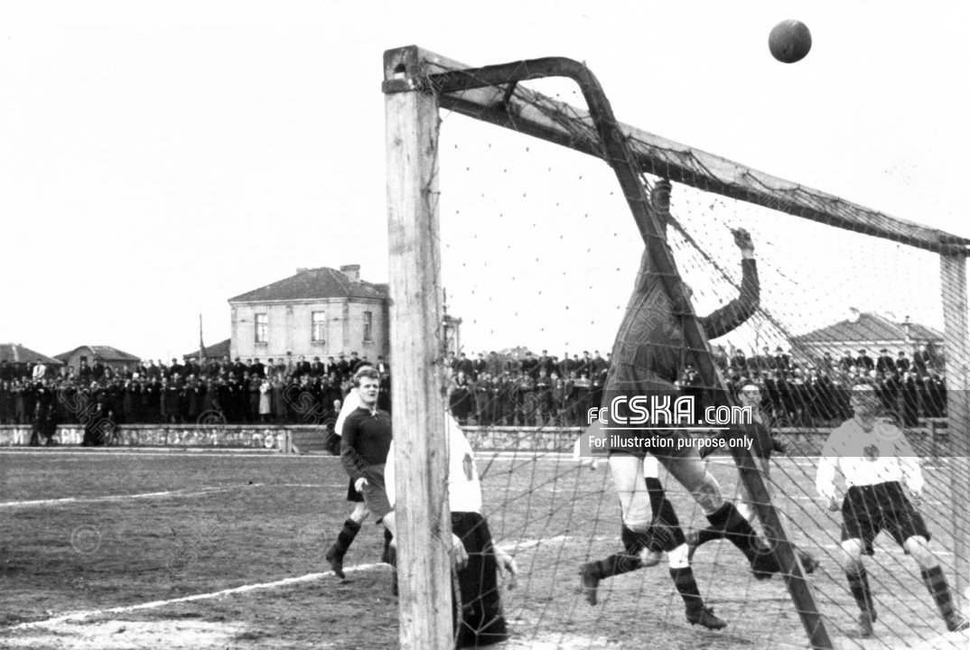 Играта още в първите моменти започна с напредвания към двете врати и показа, че тя ще се развие с нервно темпо. Пръв успя да открие резултата отборът на Торпедо в 17-та минута чрез дясното крило Минков след изпълнението на близък наказателен удар. Голът окуражи пловдивските играчи те се хвърлиха в нови атаки .Но в 28-та минута, при едно опасно слизане на Народна войска към полето на Торпедо, дясного крило Минев с отличен удар постигна изравняване. До края на полувремето резултатът не се промени.
