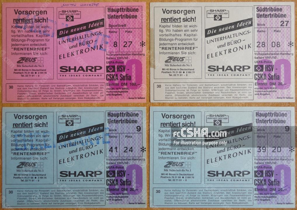 ЦСКА​ загуби от Хамбургер (Хамбург) с резултат 2:0 във футболна среща от 1/16 финал — първа среща на Купа на УЕФА 1991/92 играна на 22 октомври 1991 г. на стадион „Фолкспаркщадион“ в/във Хамбург.