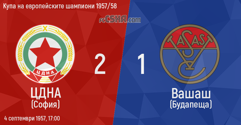 По силата на жребия още в предварителните срещи на третия турнир за купата на европейските клубове-шампиони нашият първенец ЦДНА трябва да играе два мача с носителя на средноевропейската купа унгарския първенец „Вашаш“ от Будапеща.