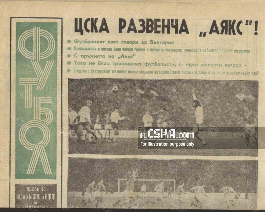 ЦСКА „Септемврийско знаме“ елиминира от турнира за купата на европейските шампиони Аякс и свали от собствения му пиедестал отбора, който доскоро бе считан за еталон на съвременен футбол. За колектив, който сочи бъдещето на най-популярната игра.
