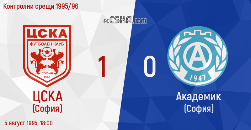 ЦСКА победи Академик (София) с резултат 1:0 във футболна среща от Контролни срещи 1995/96 играна на 5 август 1995 г. в 18:00 ч. на стадион „Българска армия“ в/във София. Голмайстор за Армейците е Петър Михтарски (77′).