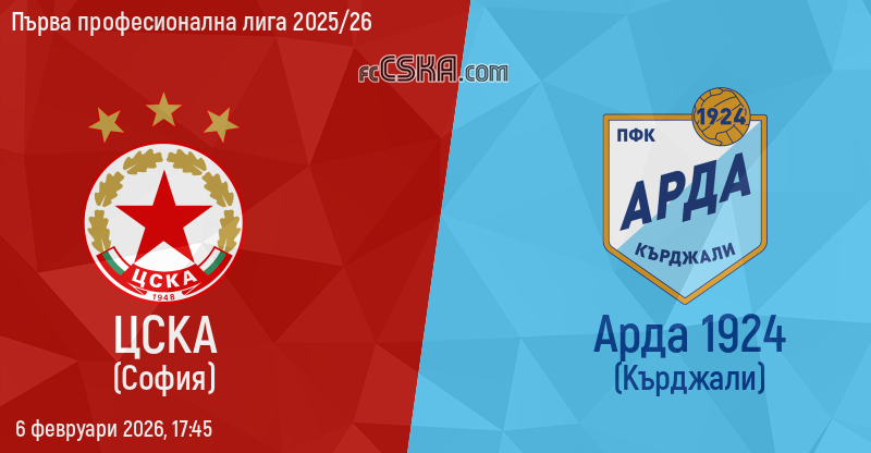 ЦСКА ще играе с/със Арда във футболна среща от 20-и кръг на Първа професионална лига 2025/26 на 6 февруари 2026 г. в 17:45 ч. на стадион „Васил Левски“ в/във София. Мачът ще бъде предаван на живо по „Диема спорт”.