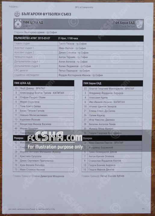 ЦСКА претърпя поражение с 0:1 от отбора на Берое Стара Загора при домакинството си от XXІ кръг на А група. Голът за гостите отбеляза Н'Диайе в 75-ата минута, а в 85-ата минута Стефан Николич не успя да преодолее Макенджиев от единадесетметров удар.