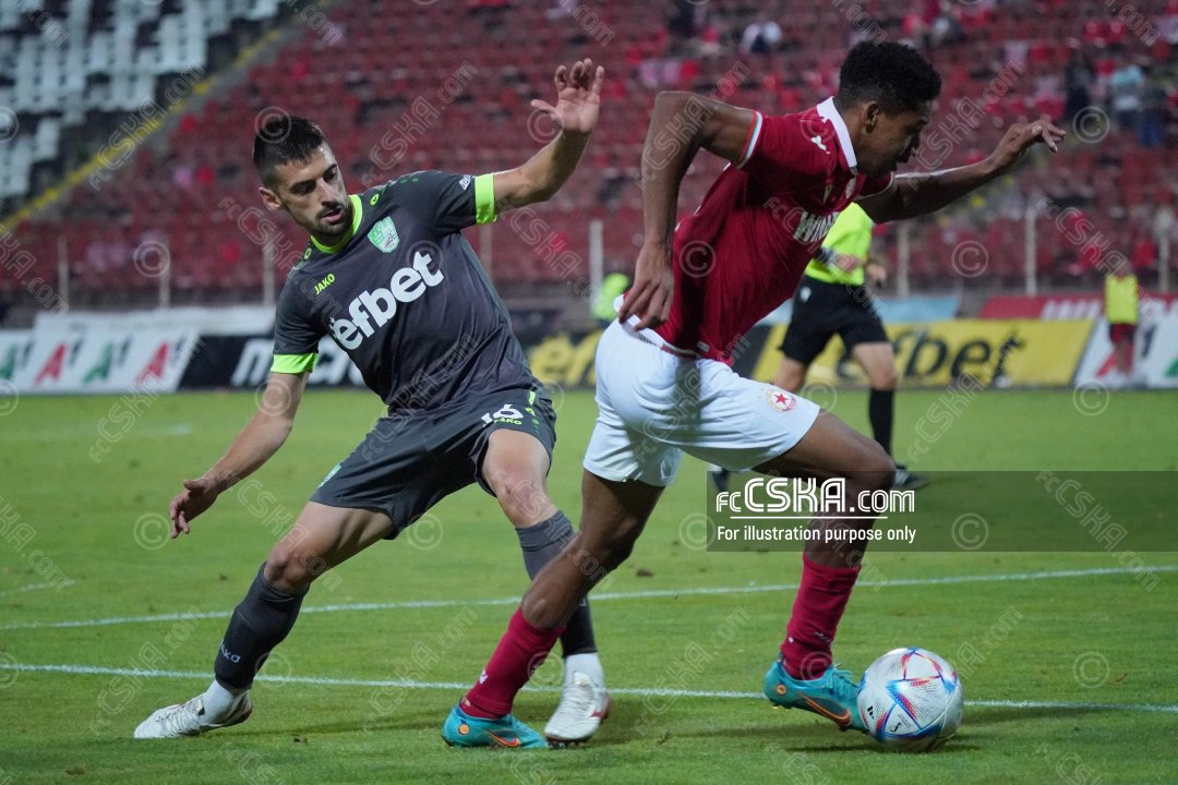 В 90+6-та минута Туфегджич пробва да намери Гарсес с дълъг пас, Караджов излиза извън наказателното поле, за да пресече, но с глава извежда бразилеца, който на празна врата оформя резултата на 5:1.