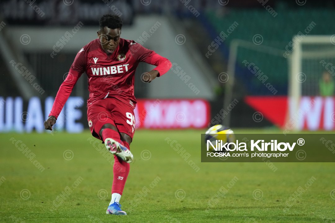 18-та м. Ебонг подава триково назад, Панайотов бие малко над вратата.