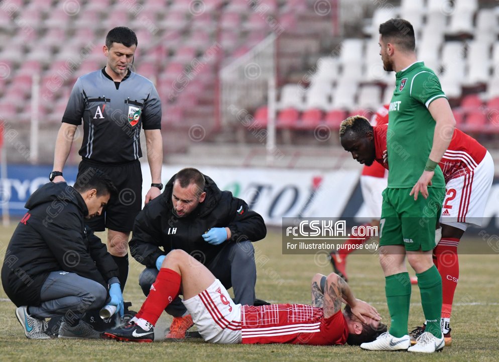В 11-та минута Антон Огнянов проби по левия фланг, центрира към Емил Стоев, който шутира, топката срещна ръката на Ангел Лясков. Въпреки, че ръката беше встрани от тялото, ударът беше от по-малко от два метра и нямаше движение на ръката към топката. Реферът не отсъди дузпа въпреки претенциите на гостите.