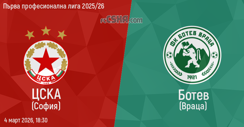 ЦСКА ще играе с/със Ботев Вр във футболна среща от 24-ти кръг на Първа професионална лига 2025/26 на 4 март 2026 г. в 18:30 ч. на стадион „Васил Левски“ в/във София.