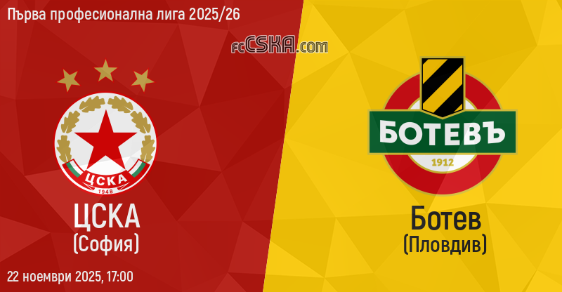 ЦСКА ще играе с/със Ботев Пд във футболна среща от 16-и кръг на Първа професионална лига 2025/26 на 22 ноември 2025 г. в 17:00 ч. на стадион „Васил Левски“ в/във София. Мачът ще бъде предаван на живо по „Диема спорт”.