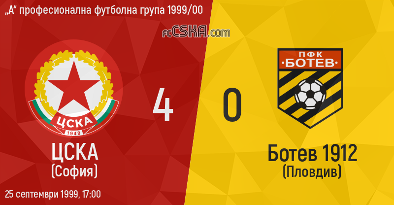 ЦСКА​ победи Ботев 1912 (Пловдив) с резултат 4:0 във футболна среща от 7-и кръг на „А“ професионална футболна група 1999/00 играна на 25 септември 1999 г. в 17:00 ч. на стадион „Българска армия“ в/във София. Голмайстори за Армейците са Димитър Иванов (24′), Димитър Бербатов (50′ и 87′) и Асен Букарев (90′).