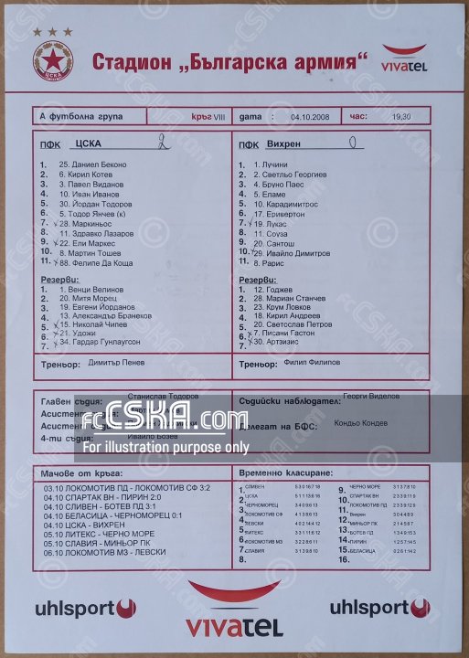| Турнир: | „А“ футболна група 2008/09 (8-и кръг) |