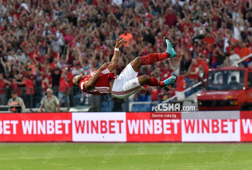 В 13-та минута перфектна атака за червените - отляво Занев подава на Малинов, който с диагонален пас в наказателното поле намира Евандро, който с удар горе вляво открива резултата - 1:0.