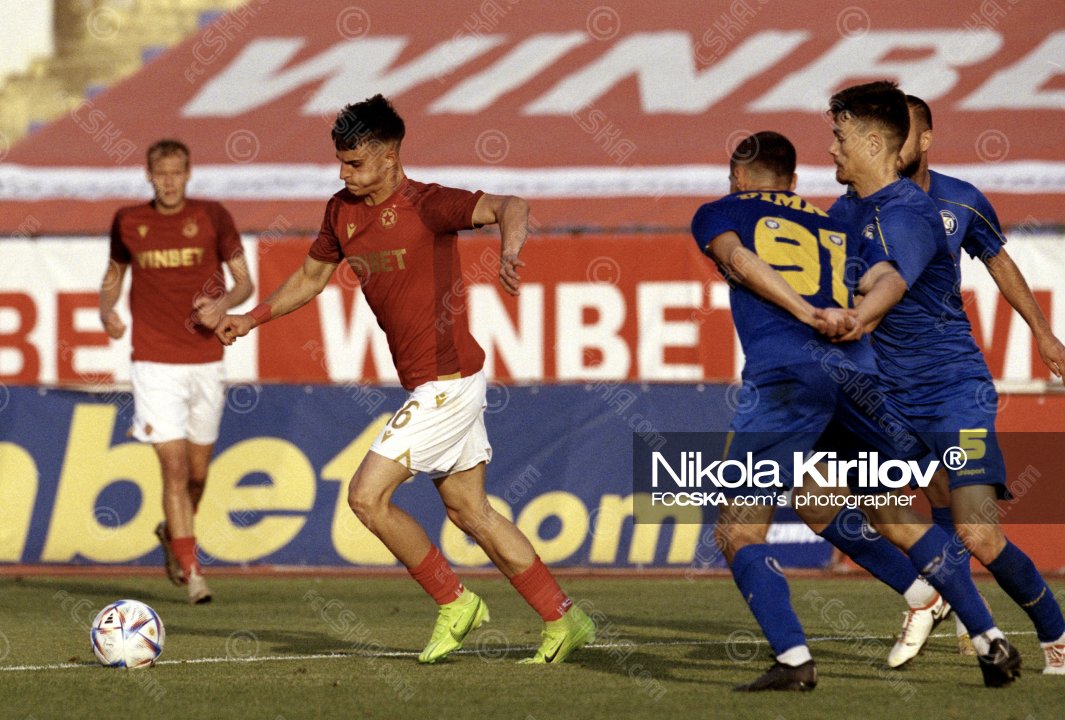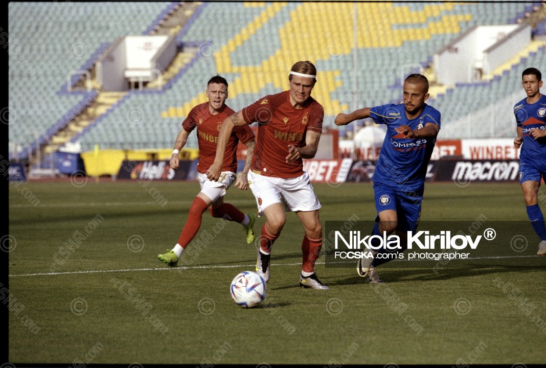 В 90+1-та минута жълт картон за Велев за фаул срещу Чорбаджийски. В същата минута остър пас на Вион, Шимич избива, Георгиев скача и лови.