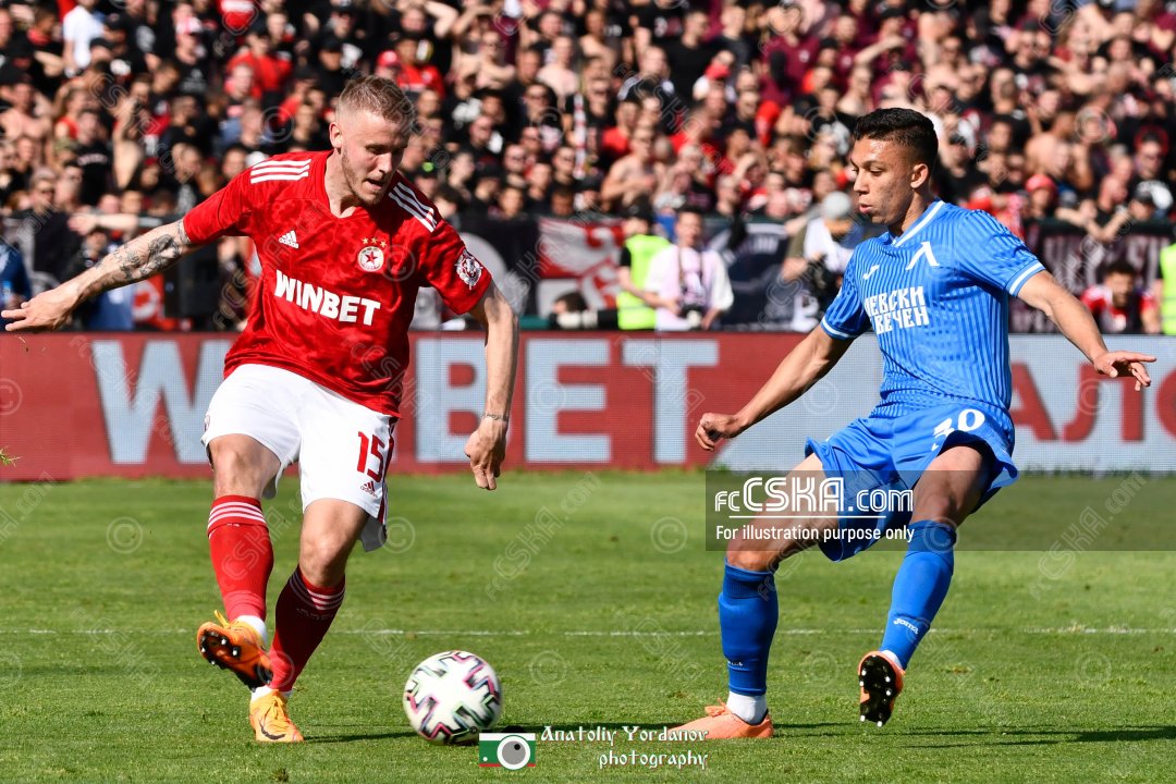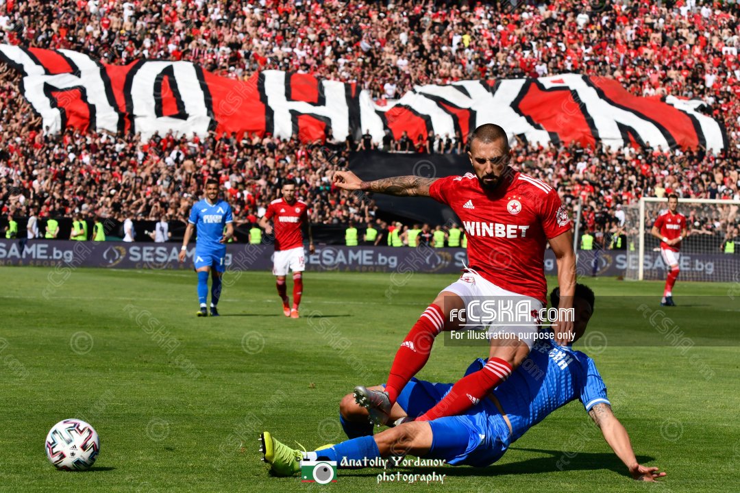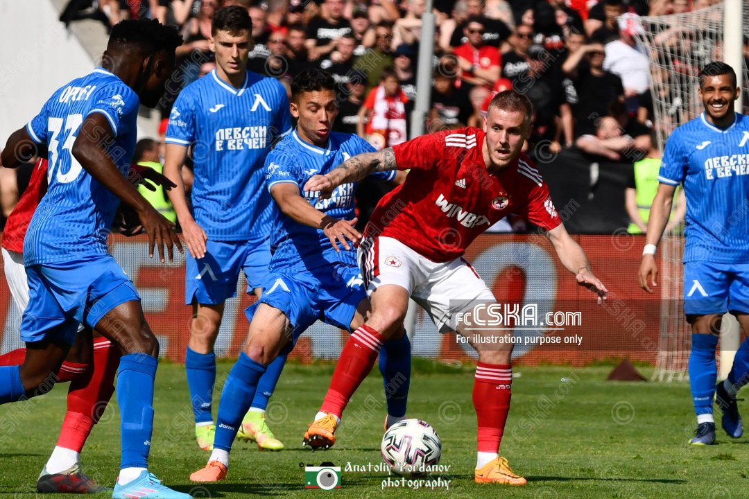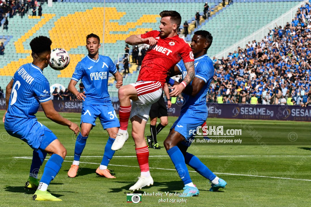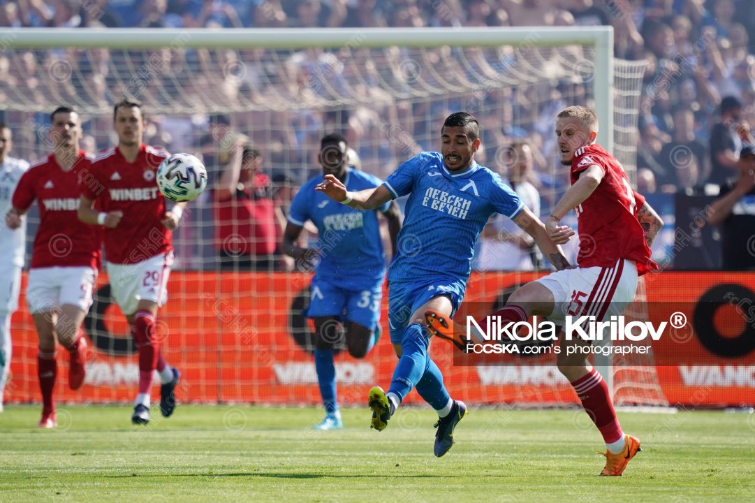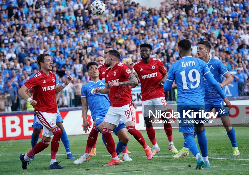 В 22-та минута Стефанов нахлува след пас на Бари, спрян е от червената отбрана.