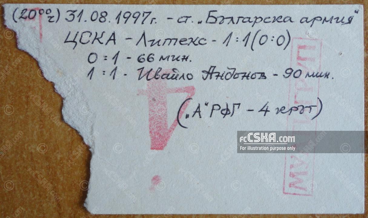 ЦСКА завърши наравно с Литекс (Ловеч) с резултат 1:1 във футболна среща от 4-ти кръг на „А“ професионална футболна група 1997/98 играна на 31 август 1997 г. в 20:00 ч. на стадион „Българска армия“ в/във София. Голмайстор за Армейците е Ивайло Андонов (88′).