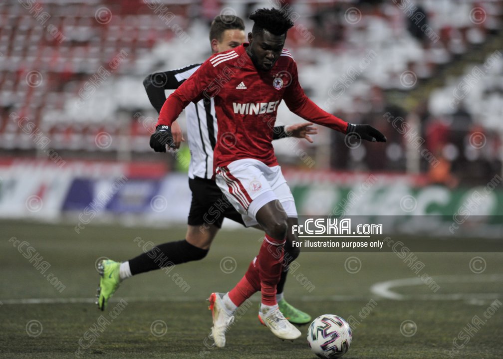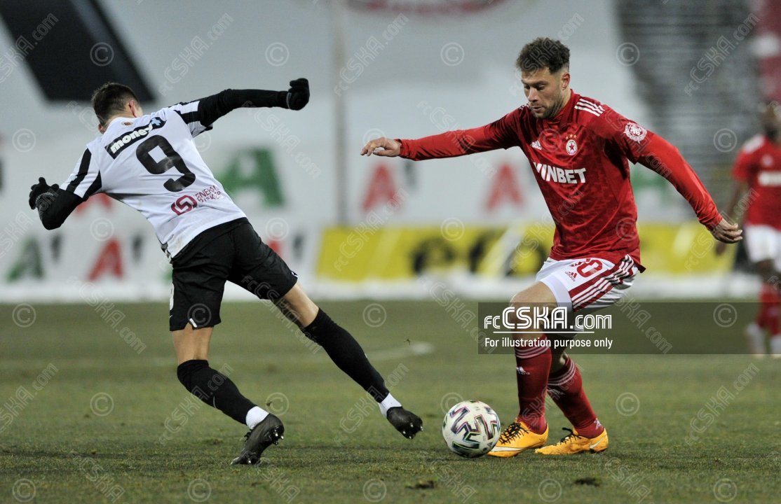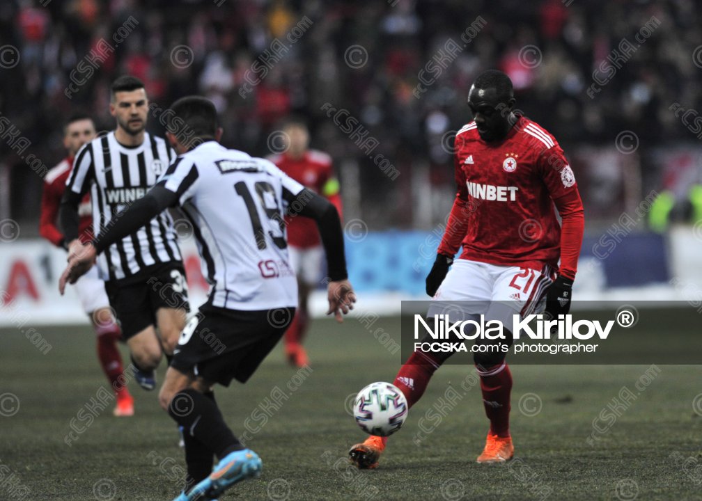 В 41-та минута след продължителна атака на червените, Жеферсон сваля с глава към Йомов, който финтира и стреля, двоен рикошет и топката влиза във вратата - 2:0.