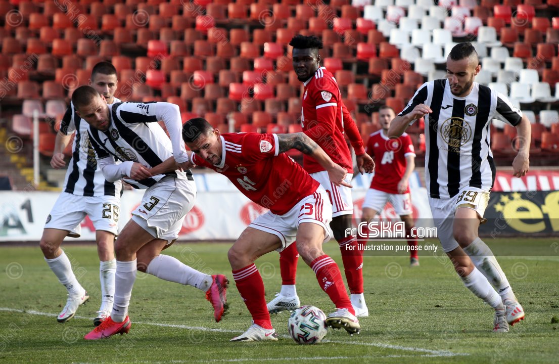 В 20-та минута центриране от корнер, разбъркване пред червената врата, Турицов чисти. В същата минута двойно между Орачев и Цветков, но Вион с класен шпагат вади в ъглов удар.