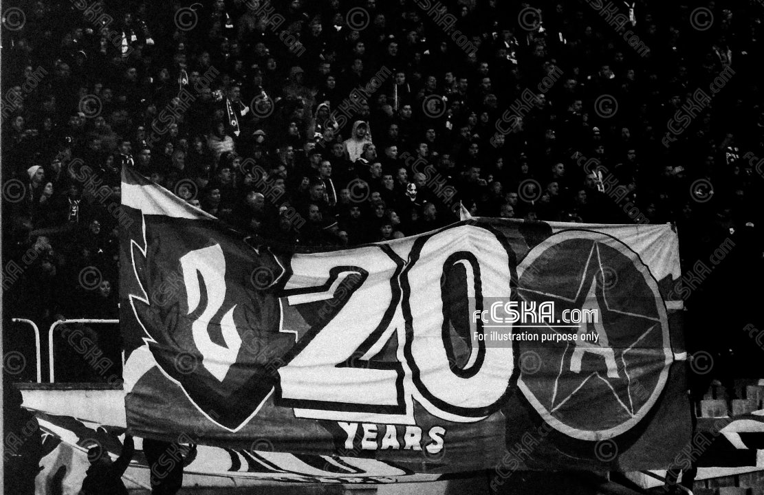 Между 6-та и 8-ма минута страхотна хореография на Сектор Г и гостите от Букурещ по случай 20 години от побратимяването на двете агитки с издигнати ликове на легендите Христо Стоичков и Мариус Лакатуш.