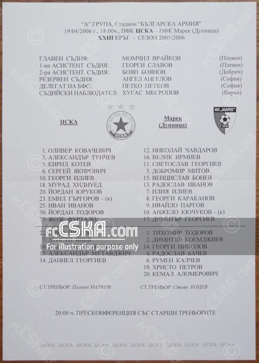 Начало - около 2000 души има по трибуните на стадион Българска армия. Марек са изцяло в бял екип. ЦСКА започва играта от центъра и ще напада наляво от главната трибуна през първото полувреме