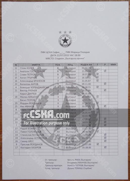 ЦСКА записа трета поредна победа в летните си контроли, като се наложи с 3:1 над Марица Пловдив на „Българска армия“. Тимът на Христо Янев имаше подчертано превъзходство през целия мач, в който отново блесна младият Павел Головодов. Тийнейджърът се отчете с две асистенции в срещата, която бе неофицален дебют за Самир Аясс и Момчил Цветанов. Това бе и първи мач за 14-годишния бранител на „армейците“ Валентин Антов, който се появи в игра през второто полувреме.