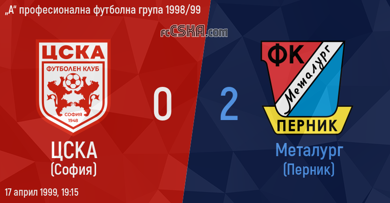 ЦСКА загуби от Металург (Перник) с резултат 0:2 във футболна среща от 23-ти кръг на „А“ професионална футболна група 1998/99 играна на 17 април 1999 г. в 19:15 ч. на стадион „Българска армия“ в/във София.