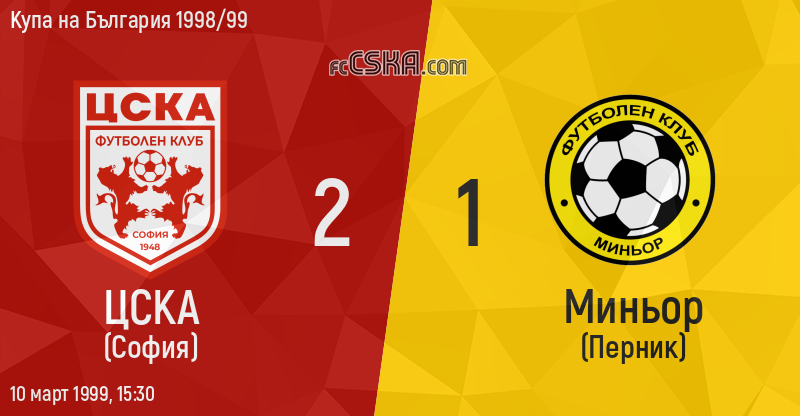 ЦСКА победи Миньор (Перник) с резултат 2:1 във футболна среща от Четвъртфинал — първа среща на Купа на България 1998/99 играна на 10 март 1999 г. в 15:30 ч. на стадион „Българска армия“ в/във София. Голмайстори за Армейците са Адалберт Зафиров (5′ от дузпа) и Димитър Бербатов (74′).