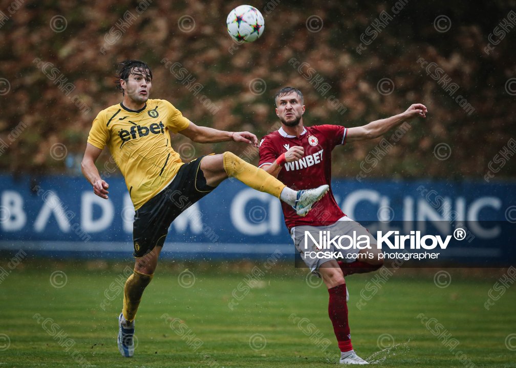 В 26-та минута жълт картон за Кох за фаул срещу Тютюков.