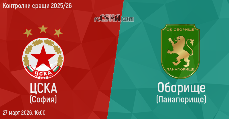 ЦСКА ще играе с/със Оборище във футболна среща от Контролни срещи 2025/26 на 27 март 2026 г. в 16:00 ч. на стадион „сп. компл. „ЦСКА““ в/във Панчарево. Мачът ще бъде предаван на живо по „Sportbg.bg”.