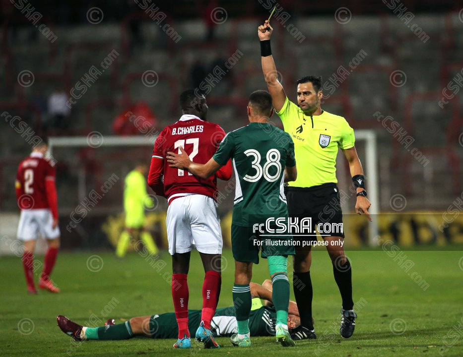 В 17-та минута страхотен пас на Шагоян към Морено, финт и Георгиев събаря нападателя, жълт картон и дузпа.